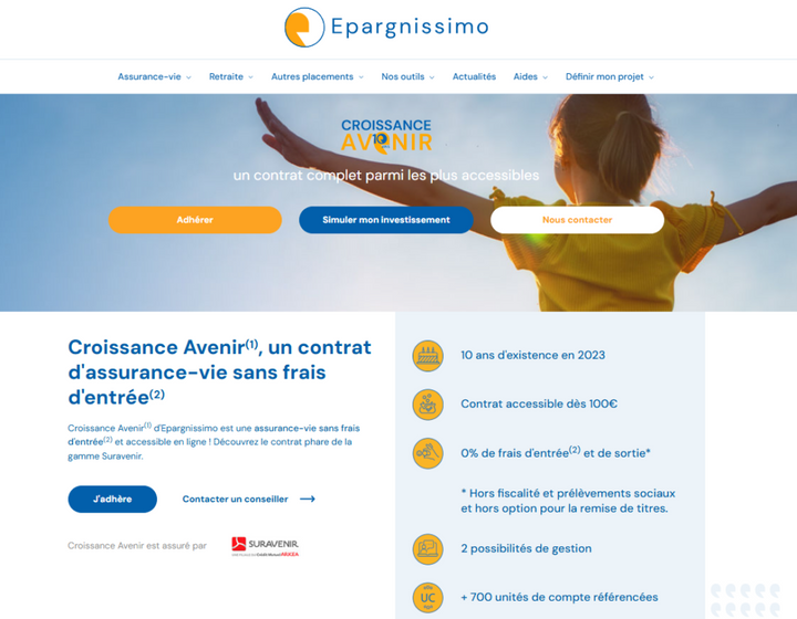 Distribué exclusivement par Epargnissimo et géré par Suravenir (filiale du Crédit Mutuel Arkéa), Croissance Avenir s'impose comme une référence de l'assurance-vie en ligne depuis puis de 10 ans.