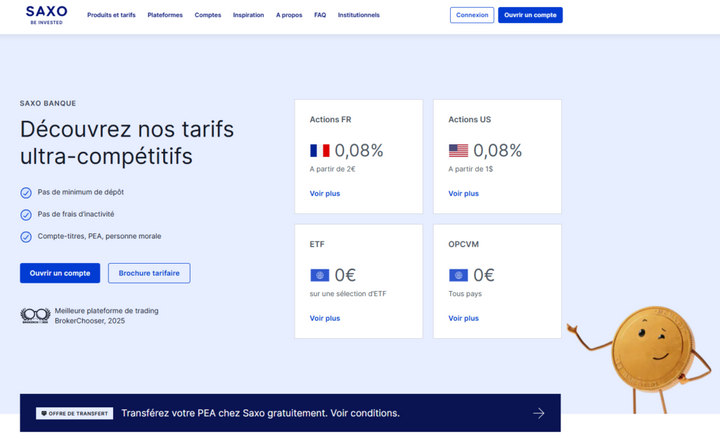 - La plateforme SaxoInvestor : intuitive et efficace, elle permet de répondre aux besoins de la majorité des investisseurs. Ses fonctionnalités sont largement suffisantes pour gérer ton PEA.